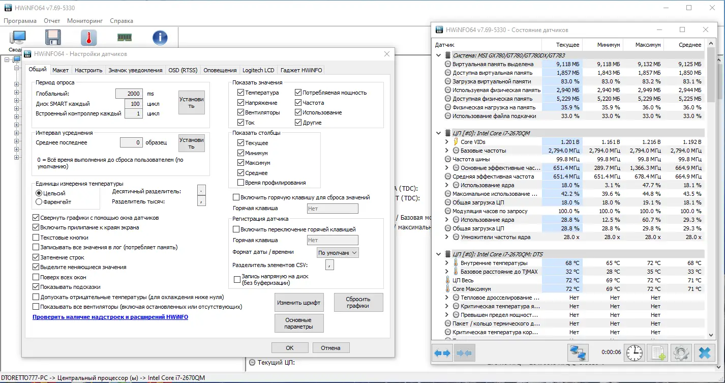 После запуска программы пользователь может выбрать режим отображения: сводку по системе или детализированный просмотр с датчиками. Интерфейс разделён на логические блоки, что упрощает навигацию и доступ к нужной информации. Данные обновляются в реальном времени, а текущие значения датчиков можно сбросить с помощью назначенной горячей клавиши. Для длительного мониторинга доступен режим записи логов, который позволяет анализировать изменения параметров в течение времени. Программа поддерживает сворачивание в системный трей, что удобно при постоянном использовании. Также можно настроить автоматический запуск с системой и активировать уведомления о превышении пороговых значений температуры или загрузки компонентов.