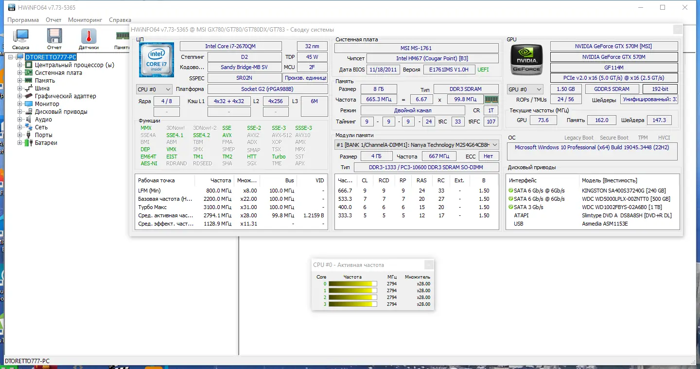 - Инструмент предоставляет полную информацию о процессоре, материнской плате, оперативной памяти, видеокарте, накопителях и периферийных устройствах.