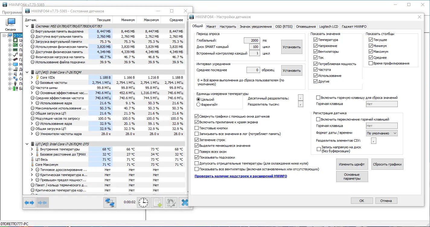 Работа с HWiNFO