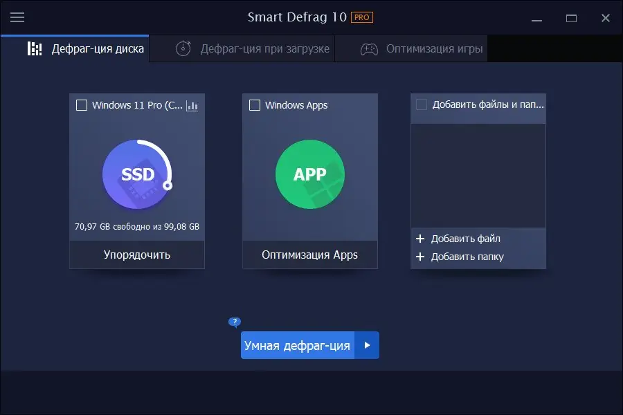Работа с IObit Smart Defrag