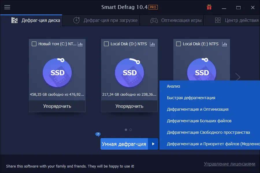 - На SSD-накопителях функция дефрагментации не требуется, и программа в таких случаях ограничена в возможностях.