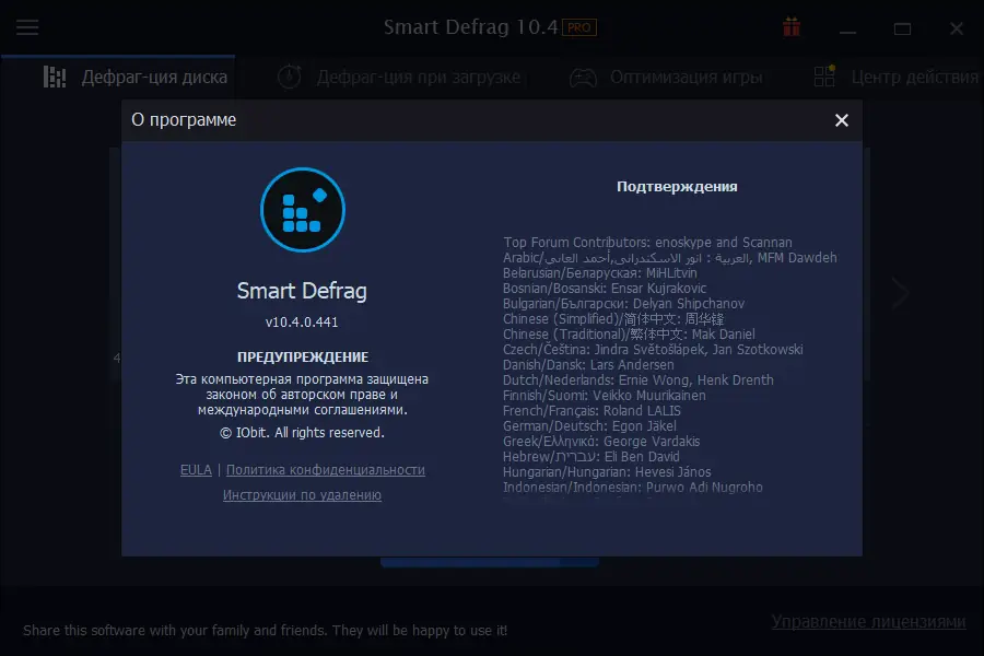 - Использует фирменный движок IObit для быстрой и точной дефрагментации файлов на HDD.