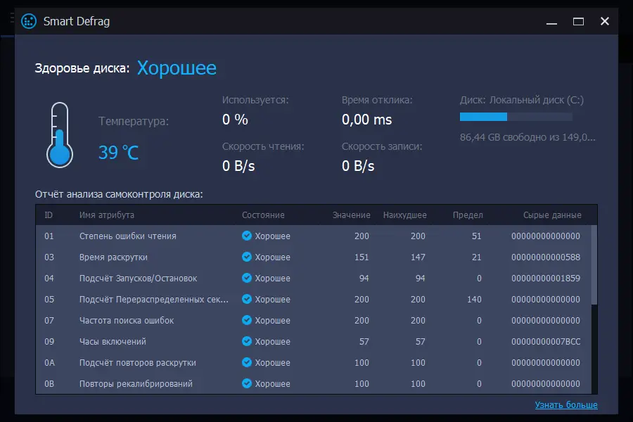 - Поддерживает фоновую дефрагментацию, не мешая повседневным задачам пользователя.