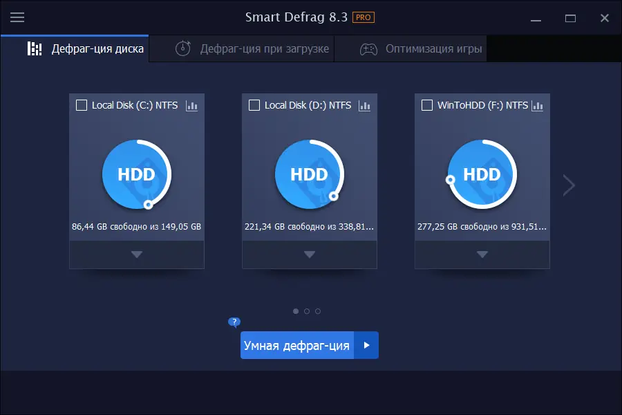Работа с IObit Smart Defrag
