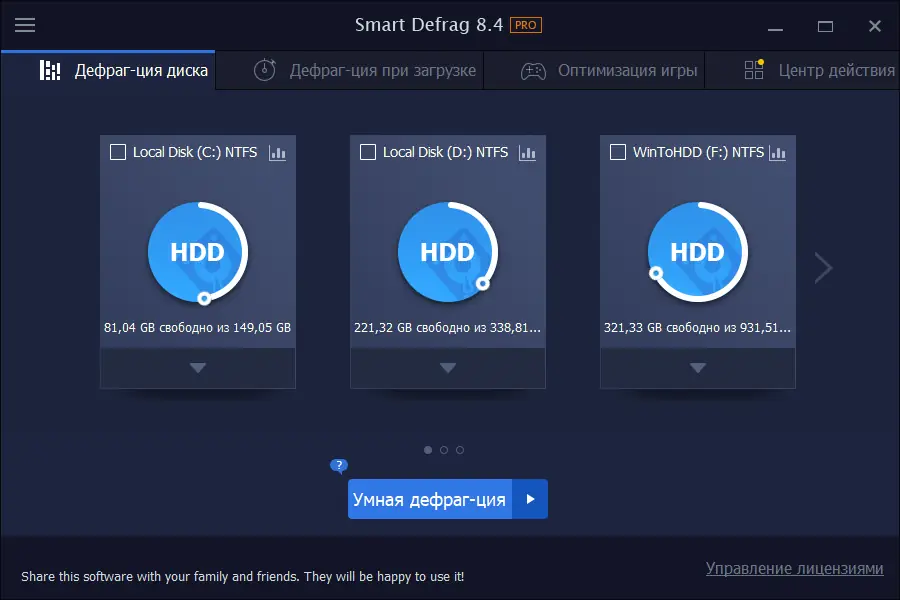 Работа с IObit Smart Defrag