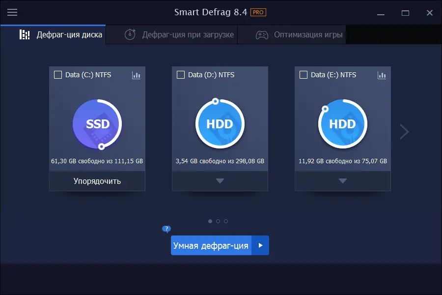 Работа с IObit Smart Defrag