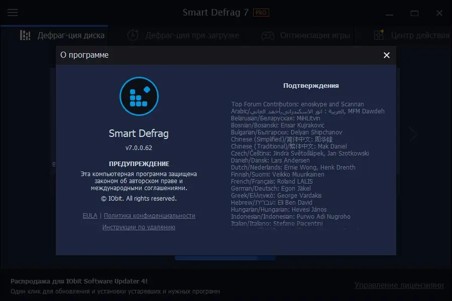 Работа с IObit Smart Defrag