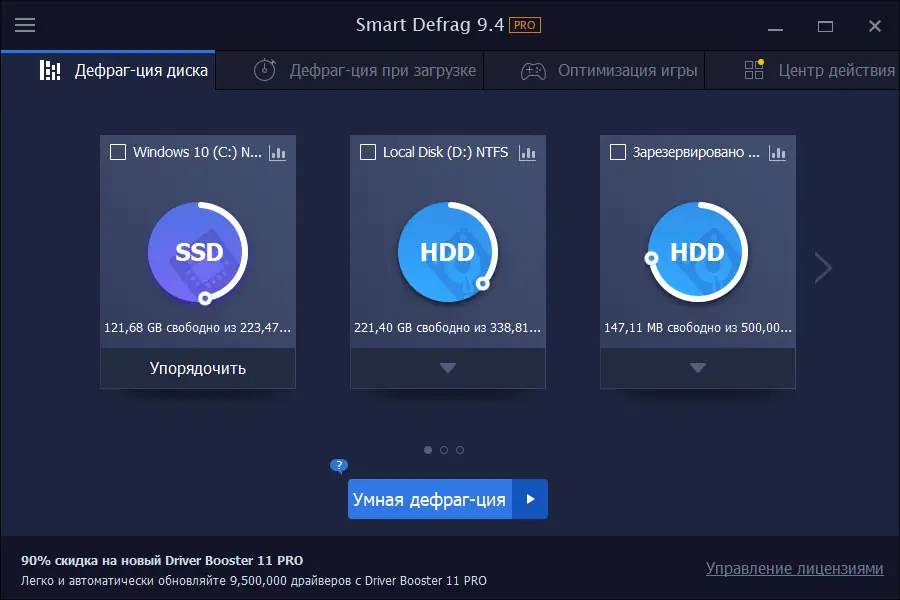Работа с IObit Smart Defrag