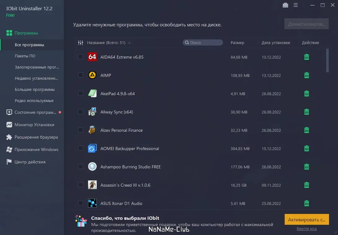 IObit Uninstaller сочетает в себе простоту интерфейса и мощь профессионального инструмента оптимизации.