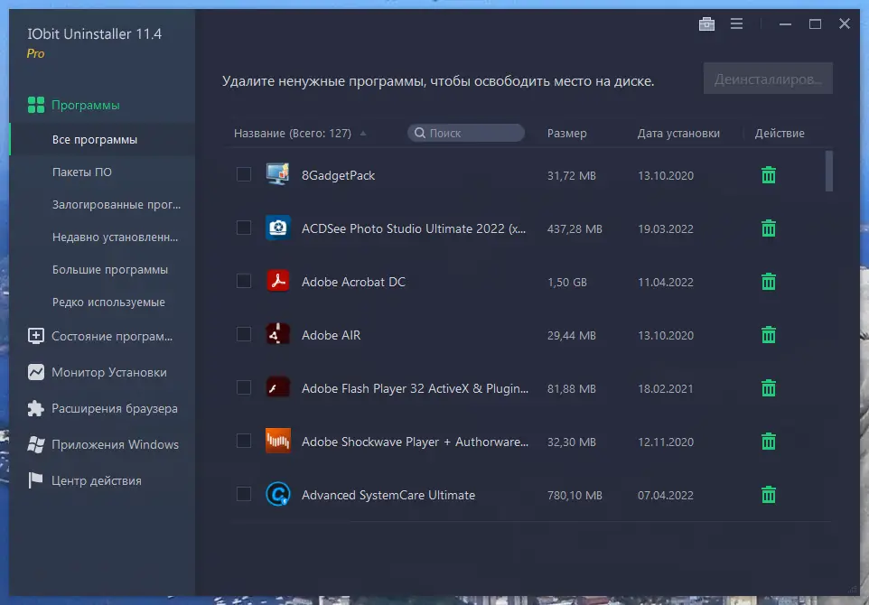 Как пользоваться IObit Uninstaller