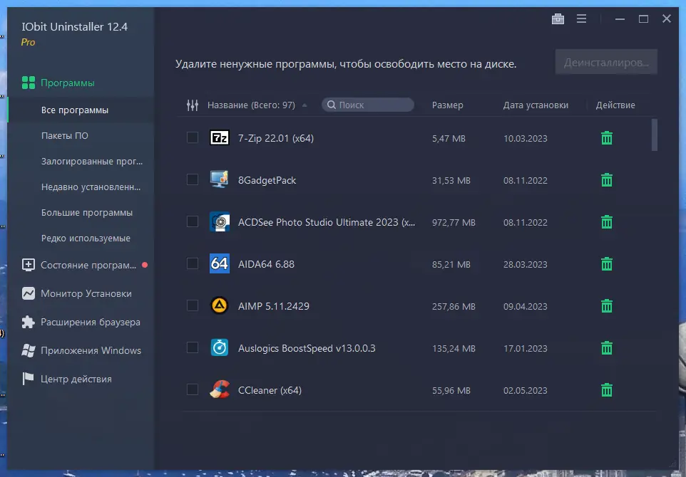 IObit Uninstaller — системная утилита, ориентированная на глубокую очистку компьютера от ненужного программного обеспечения. Она превосходит стандартные средства деинсталляции, обеспечивая полное удаление программ вместе с их остаточными файлами, папками и записями реестра. Программа поддерживает интеллектуальное сканирование, позволяя находить скрытые следы деинсталлированных приложений и вредоносные компоненты.