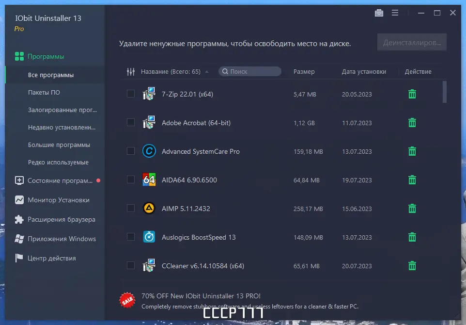 IObit Uninstaller — это инструмент для деинсталляции программного обеспечения, разработанный для максимальной эффективности и удобства. Он не просто удаляет приложения, но и сканирует систему на наличие остатков: файлов, папок, записей в реестре и следов в браузерах. Это особенно полезно при работе с программами, которые оставляют после себя мусор, снижающий производительность системы. Утилита поддерживает пакетное удаление, что позволяет за один раз очистить компьютер от нескольких ненужных приложений. Также доступна функция принудительного удаления, необходимая для программ, отказывающихся удаляться стандартными средствами.