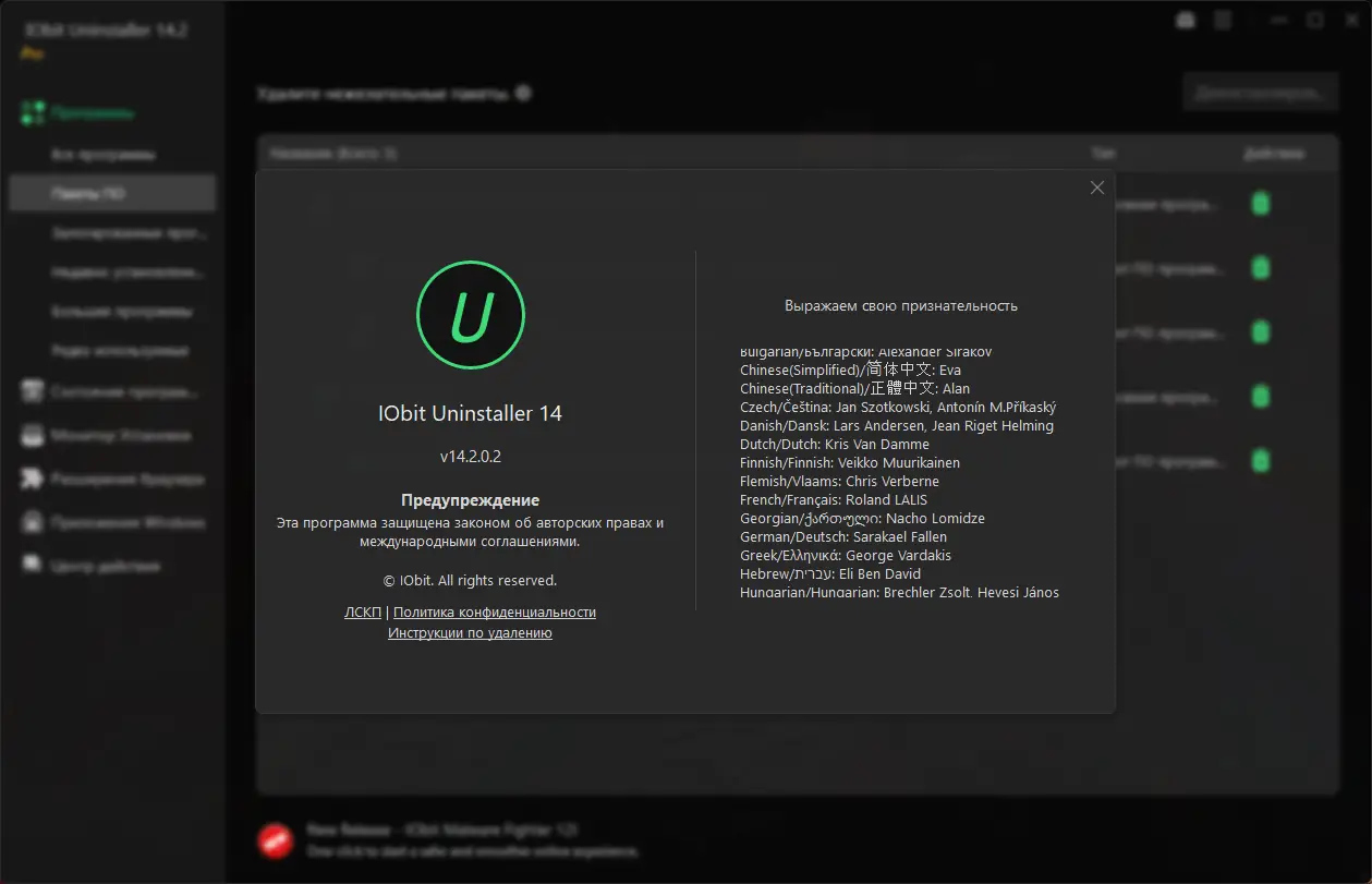 Работа с IObit Uninstaller