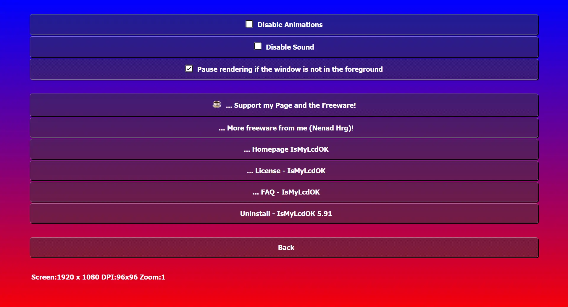 IsMyLcdOK — компактная утилита для проверки LCD-экранов на наличие битых и застрявших пикселей. Программа не требует установки и позволяет быстро протестировать монитор, используя сплошные цветовые заливки.