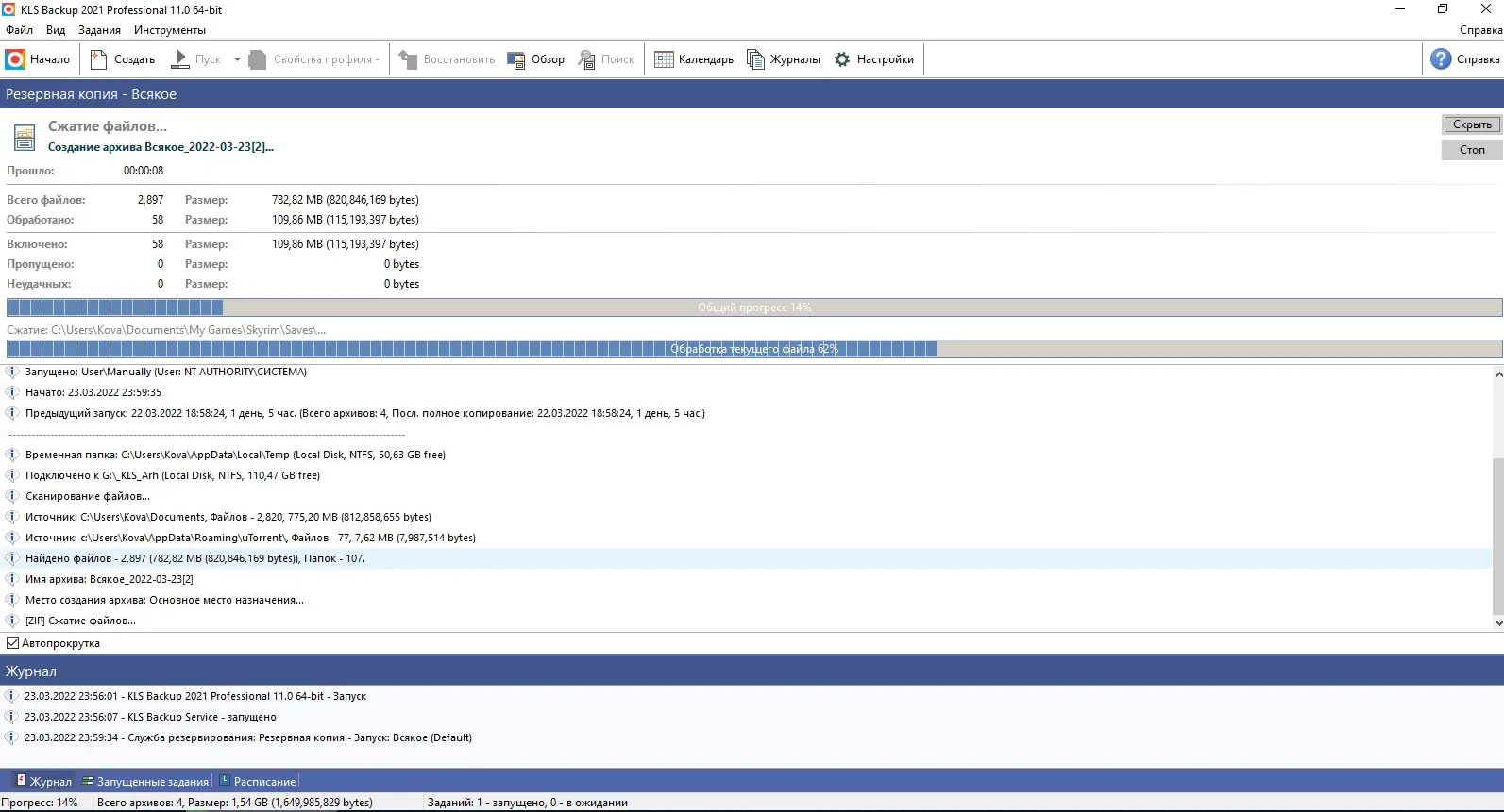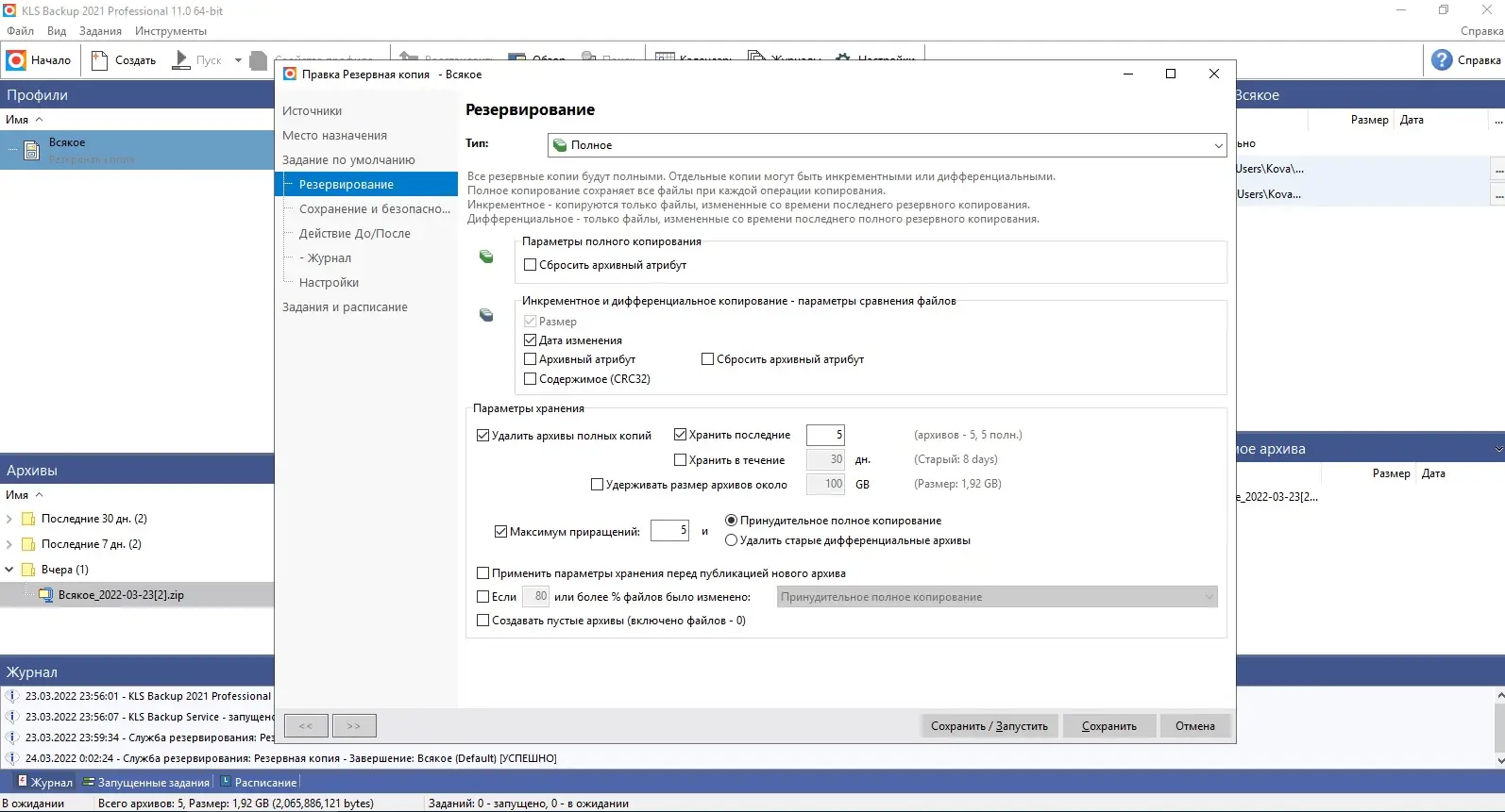 Работа с KLS Backup