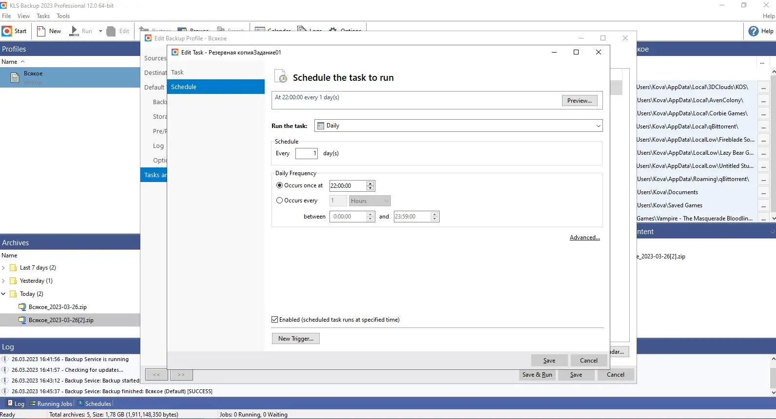 - Гибкие настройки профилей резервного копирования с фильтрацией файлов и версионированием