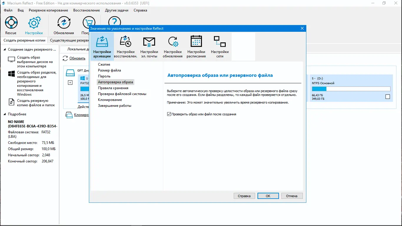 - Верификация образов после создания повышает надежность резервных копий и исключает повреждение данных.