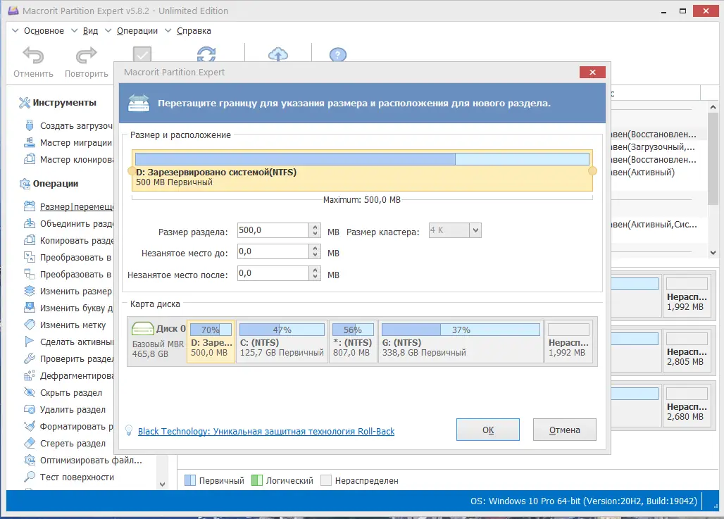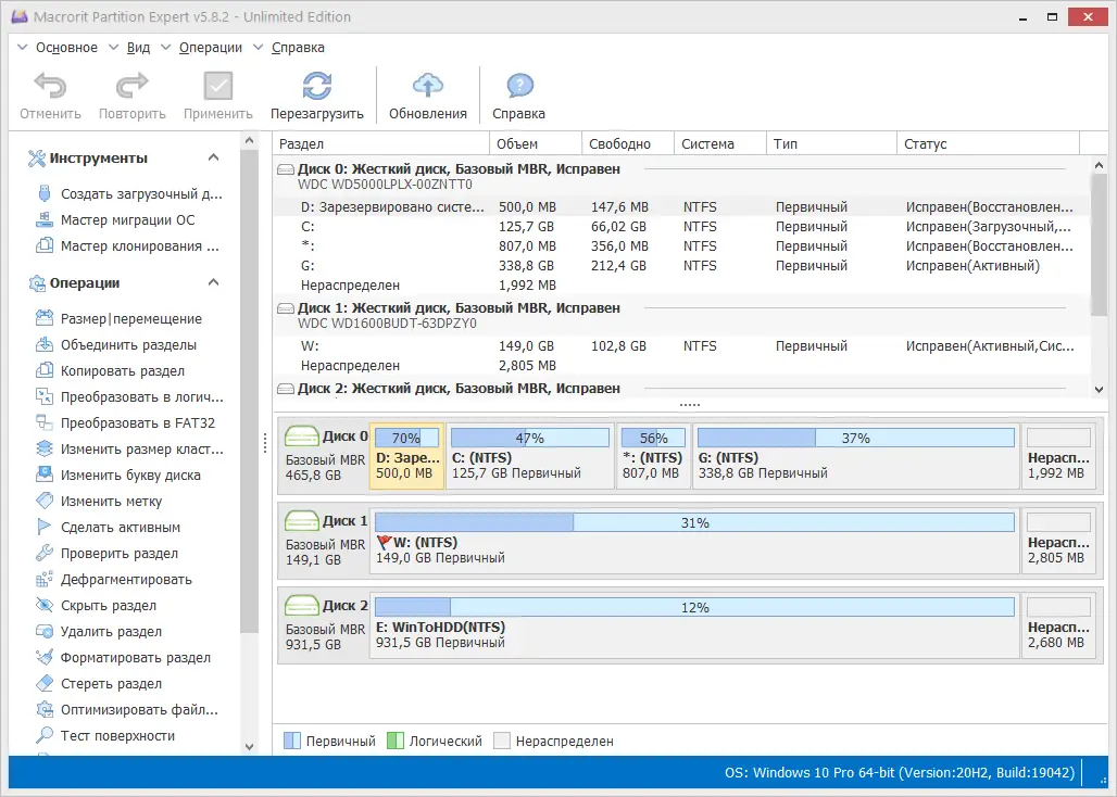 - Полная поддержка как MBR, так и GPT с возможностью работы с большими дисками