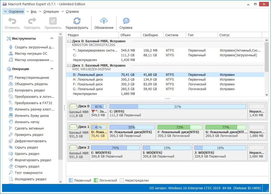 - Поддержка дисков ёмкостью свыше 2 Тб и форматов MBR/GPT.