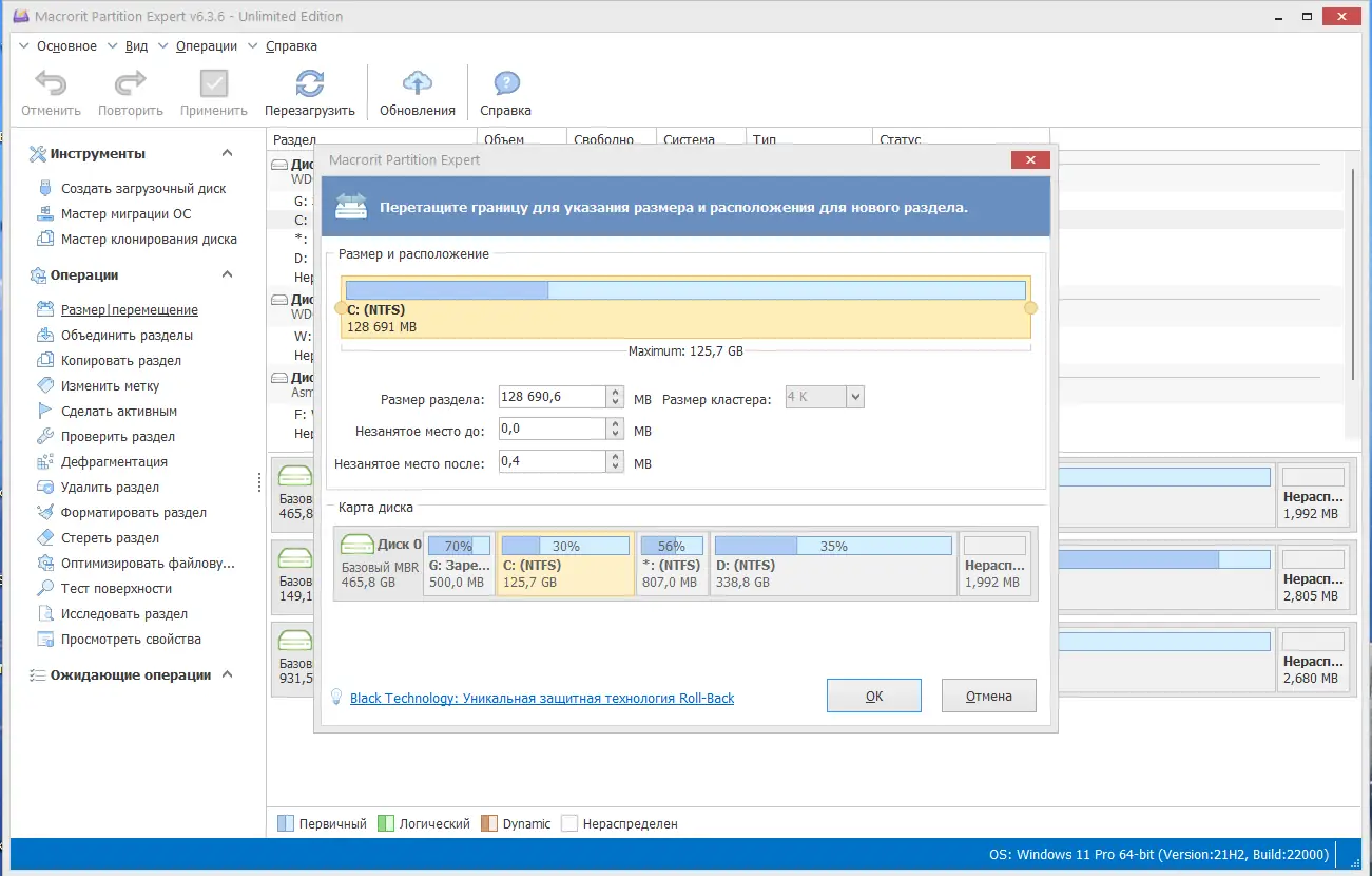 - Работа с разделами без потери данных, включая системные тома.