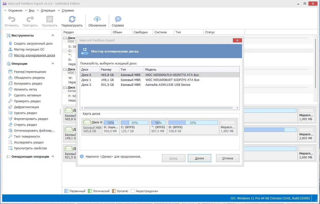 - Функция клонирования дисков и разделов для резервного копирования.