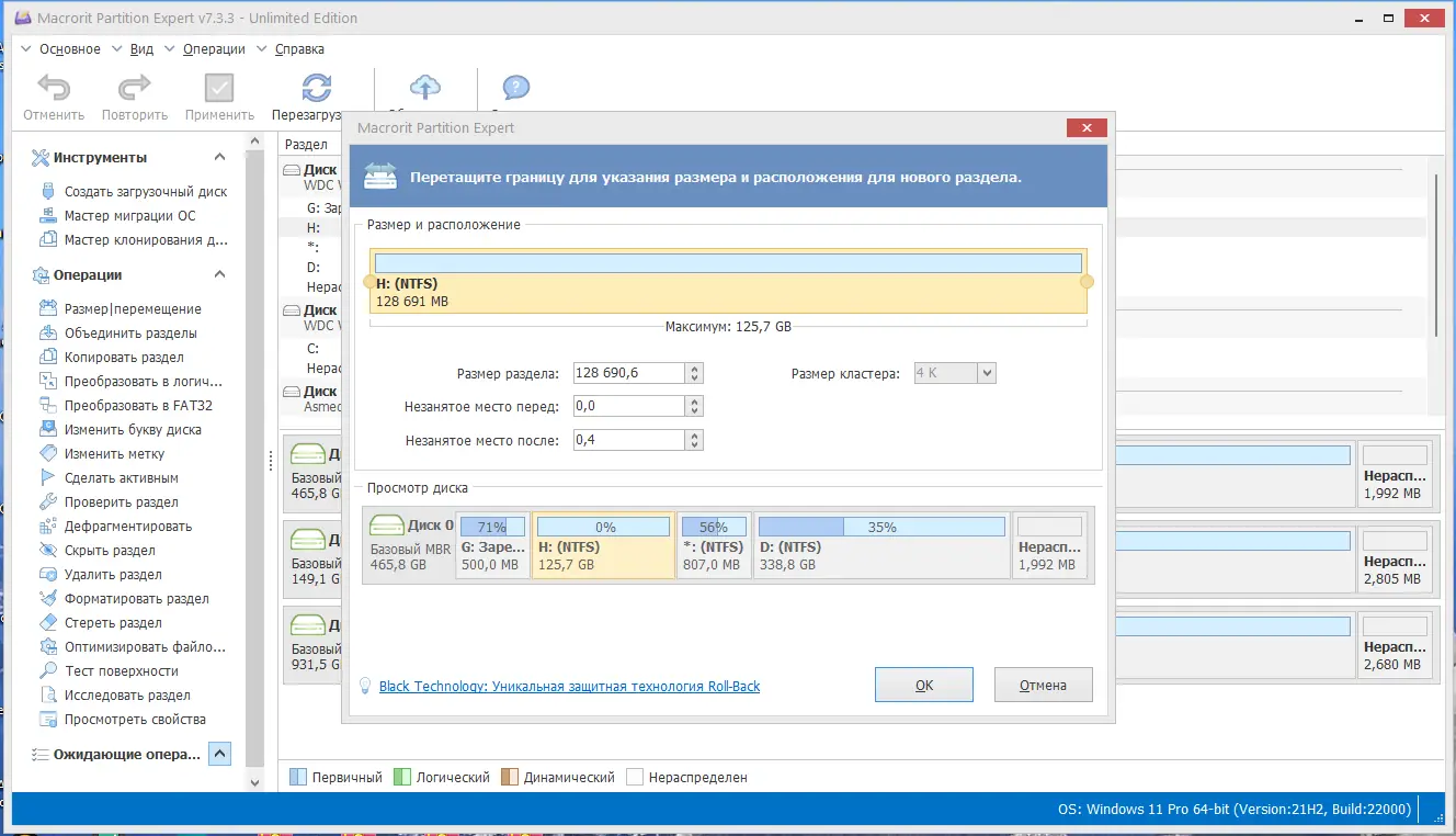 - Полная поддержка авто-дефрагментации дискового пространства, исключающая фрагментацию при изменении размеров разделов.