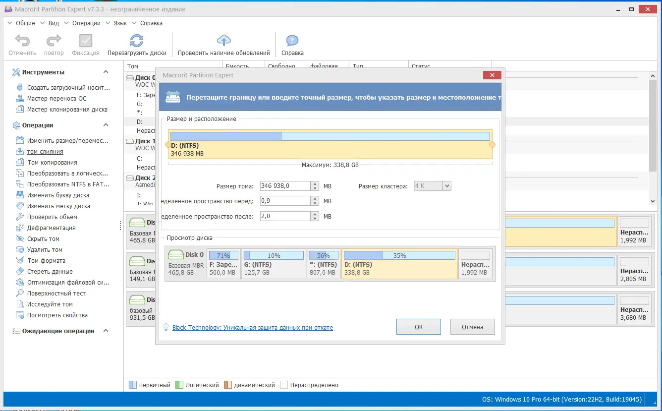 - Автоматическая дефрагментация при изменении размеров разделов.