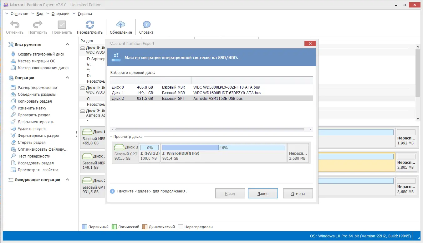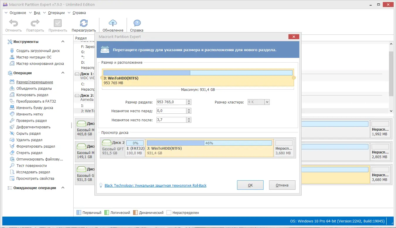 - Поддержка дисков объёмом свыше 2 терабайт и совместимость с MBR/GPT-разметкой.