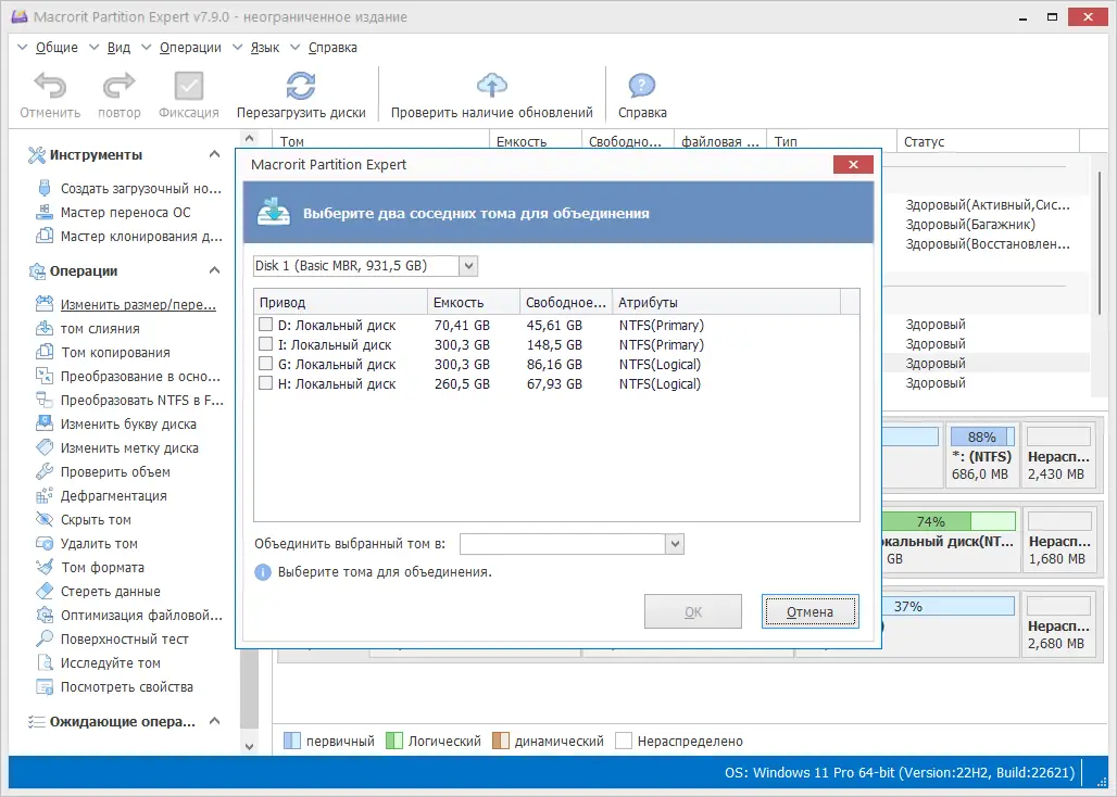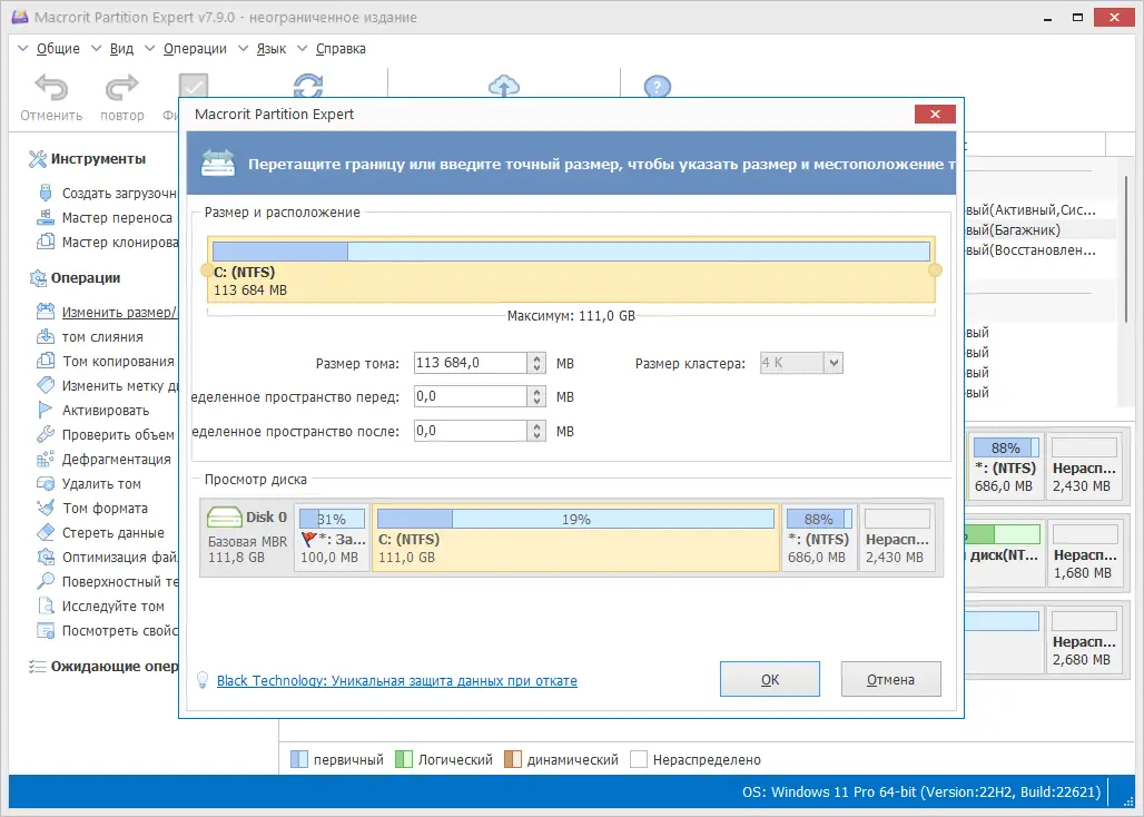 Интерфейс программы интуитивно понятен и не требует глубоких технических знаний. После запуска отображается полная карта дисков с визуализацией всех разделов, их размеров и свободного места. Пользователь может изменить размер раздела, перетащив границу, или запустить операцию через контекстное меню. Все действия добавляются в очередь и могут быть отменены до применения. Перед выполнением критических операций система предлагает создать точку восстановления. Утилита поддерживает тонкую настройку, включая выбор файловой системы и выравнивание разделов для SSD.