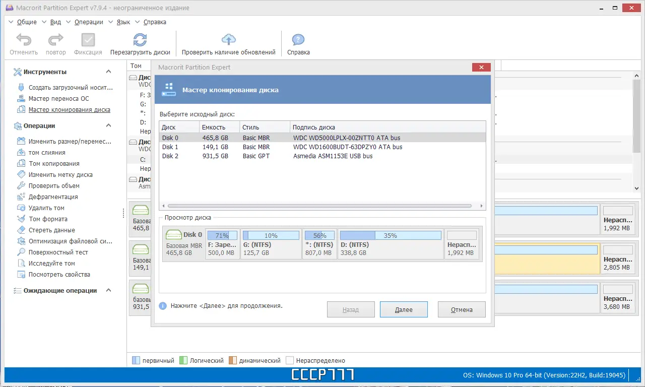 - Поддерживает диски формата MBR и GPT, включая накопители свыше 2 Тб.