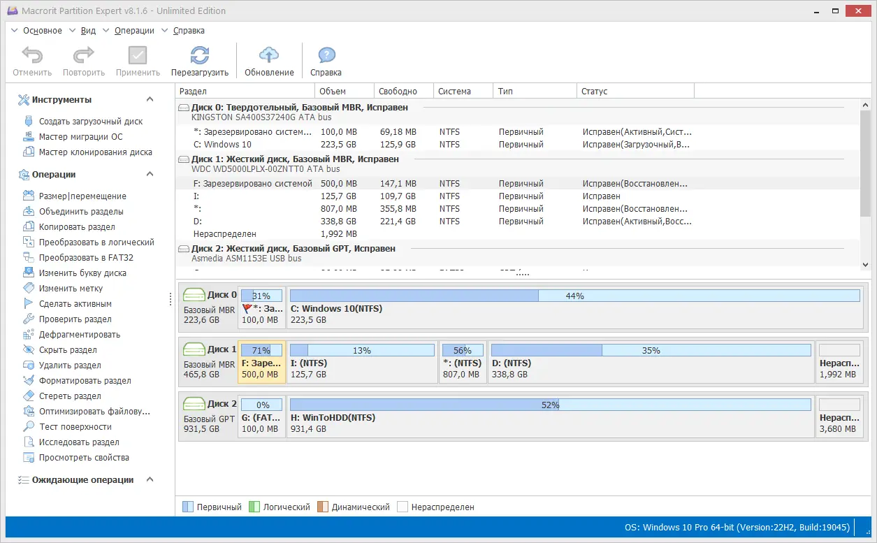 - Работа с таблицами разделов MBR и GPT без ограничений