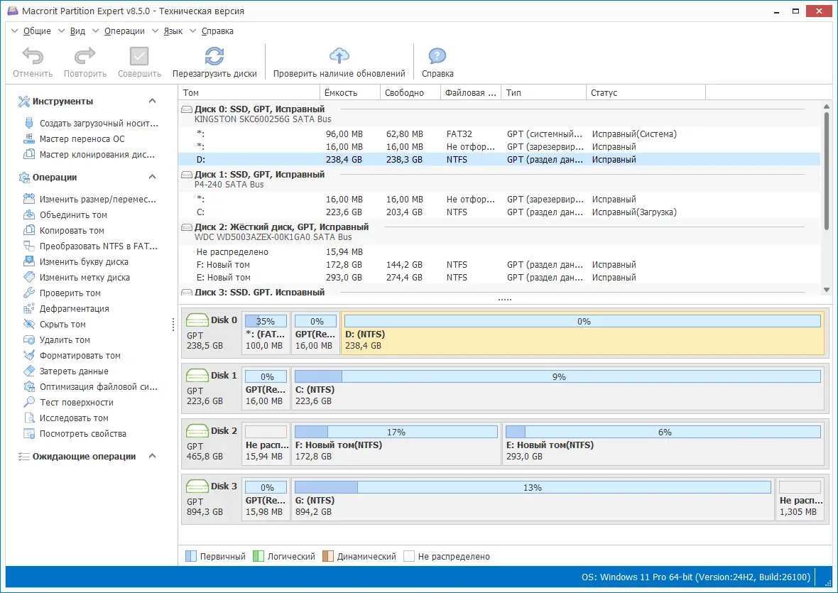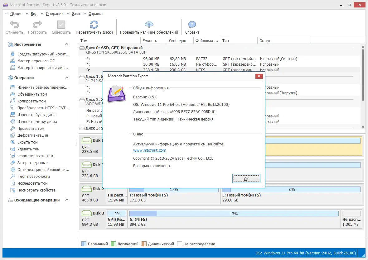 Macrorit Partition Expert — это мощная утилита для управления разделами жёсткого диска, обеспечивающая безопасное изменение размеров, перемещение, создание и форматирование томов без потери данных. Программа поддерживает диски объёмом более 2 Тб и работает с MBR и GPT-разметкой, сочетая высокую скорость выполнения операций с надёжной защитой информации.