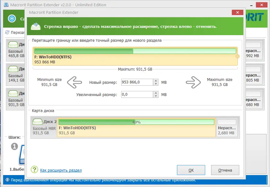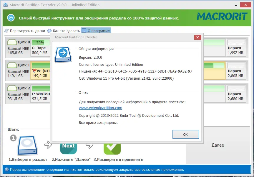 Расширение диска с сохранением всех данных — главная задача, которую решает Macrorit Partition Extender.