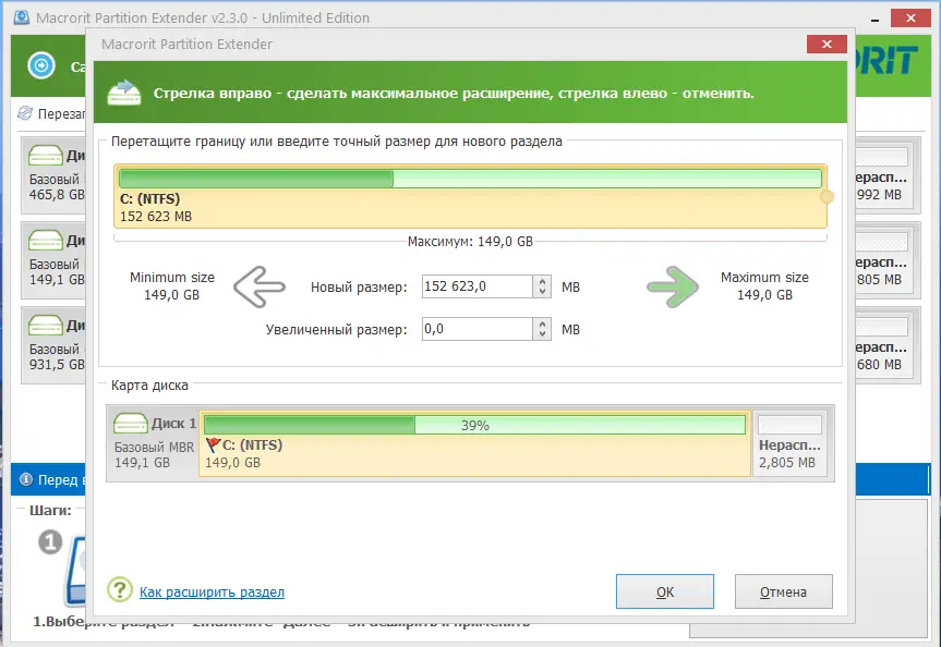 Macrorit Partition Extender — это эффективная утилита для управления разделами на жёстких дисках и SSD-накопителях, позволяющая быстро расширять системные и другие разделы без потери данных. Программа поддерживает как установку, так и портативный режим работы, обеспечивая гибкость в использовании на различных устройствах.