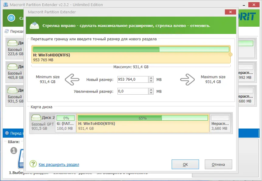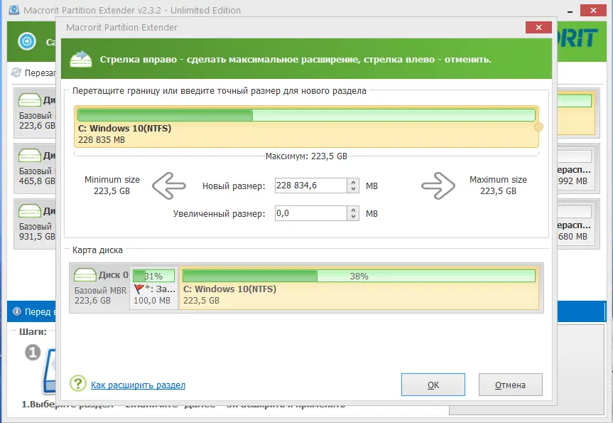Работа с Macrorit Partition Extender
