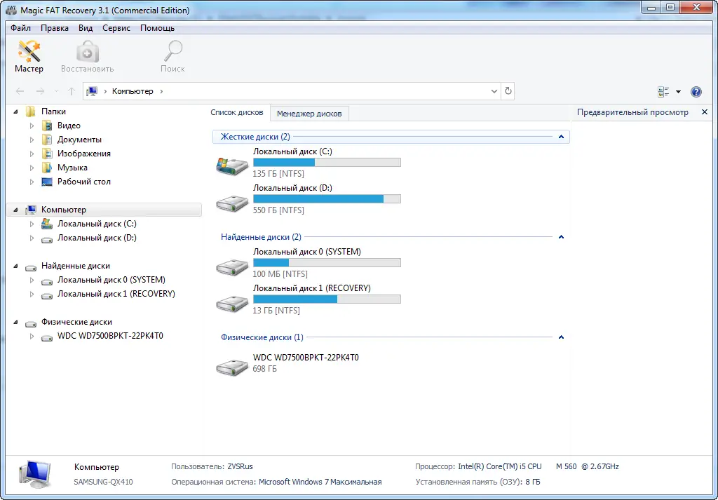 Magic FAT Recovery разработана для восстановления информации с устройств, основанных на файловых системах FAT и exFAT, которые широко применяются в портативных накопителях и картах памяти. Программа поддерживает работу с различными типами носителей, включая USB-флешки, SD-карты, внешние диски и SSD-накопители. Она способна восстанавливать файлы после случайного удаления, форматирования, сбоев файловой системы и других инцидентов, связанных с потерей данных.