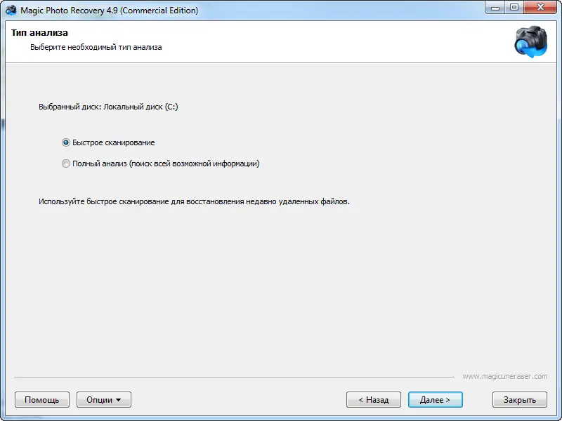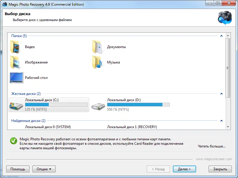 Работа с Magic Photo Recovery