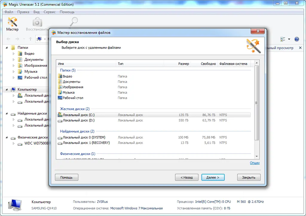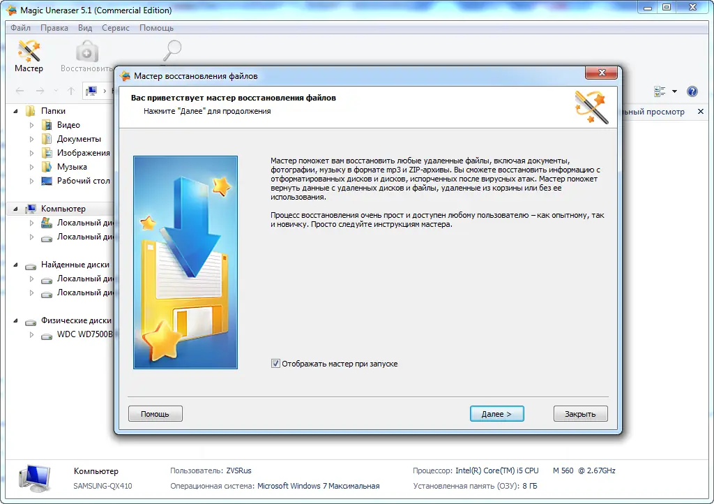 Magic Uneraser — это мощная утилита для восстановления удалённых файлов, работающая с любыми типами носителей и файловых систем. Программа позволяет вернуть данные после случайного удаления, форматирования диска или потери разделов. Восстановление происходит в несколько простых шагов, а встроенные алгоритмы обеспечивают высокую точность поиска и целостность возвращаемых файлов.