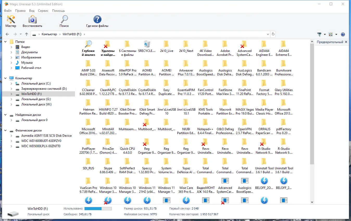 Magic Uneraser — это мощная утилита для восстановления удалённых файлов с любых типов носителей. Программа поддерживает широкий спектр файловых систем и позволяет вернуть данные даже с отформатированных или повреждённых дисков. Процесс восстановления проходит в несколько простых шагов и не требует специальных знаний.