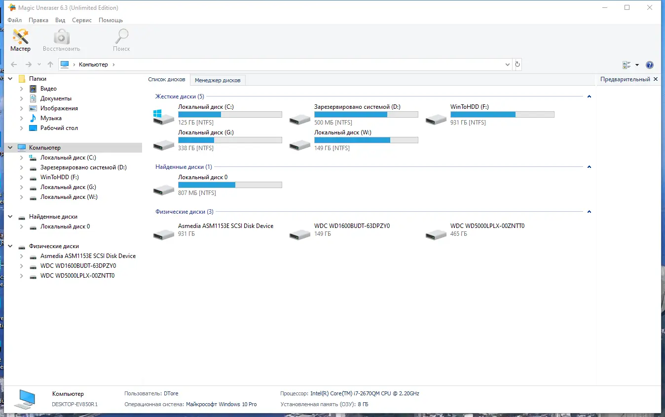 Magic Uneraser — это специализированное программное обеспечение, разработанное для восстановления информации на компьютерах под управлением Windows. Утилита эффективно работает с физическими и логическими дисками, включая SSD, жёсткие диски, флеш-накопители и карты памяти. Благодаря продуманному интерфейсу и глубокому сканированию, она способна находить файлы, удалённые случайно или в результате сбоев.