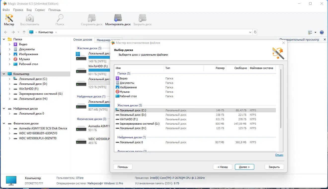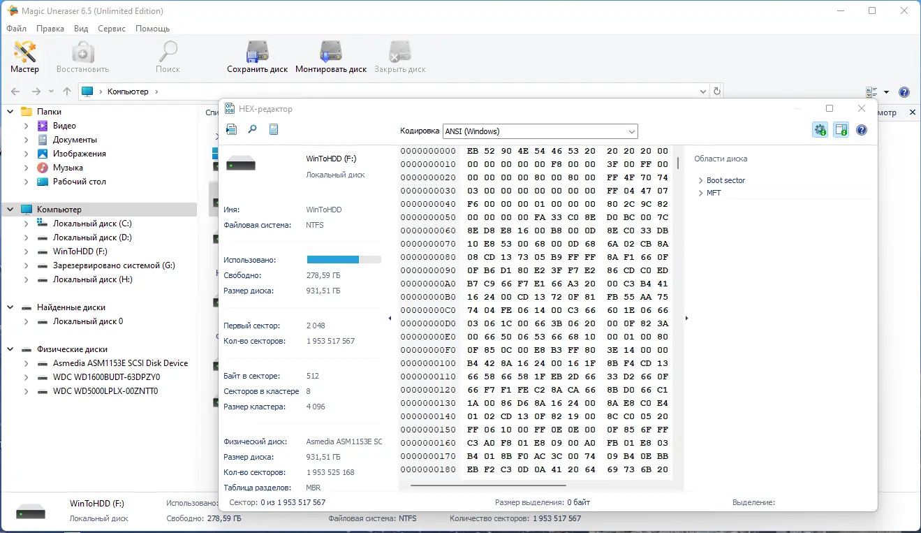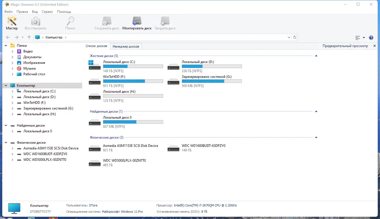 Magic Uneraser — это мощная утилита для восстановления удалённых файлов с любых типов носителей. Программа поддерживает широкий спектр файловых систем и позволяет восстанавливать данные после форматирования, сбоев, вирусных атак или случайного удаления. Интерфейс напоминает проводник Windows, что делает работу интуитивно понятной даже новичкам.
