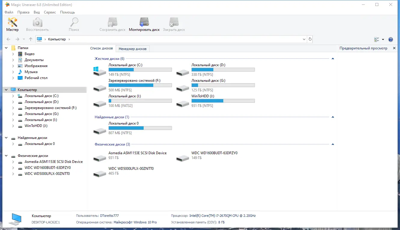 Magic Uneraser — это мощная утилита для восстановления удалённых файлов с любых типов носителей. Программа поддерживает широкий спектр файловых систем и позволяет вернуть данные после форматирования, сбоев, вирусных атак или случайного удаления. Процесс восстановления проходит в несколько простых шагов, доступных даже новичку.