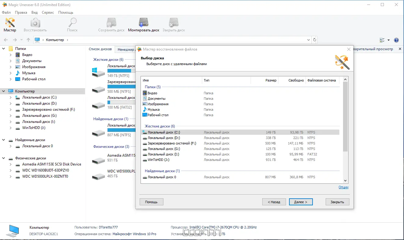 Magic Uneraser — программа для восстановления удалённых файлов с жёстких дисков, флешек, карт памяти и других носителей. Поддерживает все основные файловые системы, включая NTFS, FAT, exFAT, Ext, HFS+, APFS и другие. Позволяет восстанавливать данные после форматирования, с повреждённых или отключённых разделов, а также с носителей, с которых файлы были удалены без использования корзины.