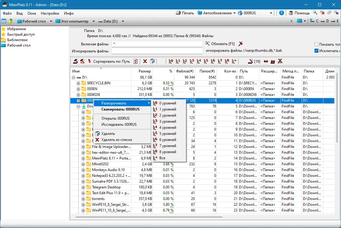 MeinPlatz помогает восстановить контроль над дисковым пространством, предоставляя точные данные о распределении файлов.