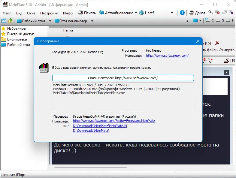 MeinPlatz — это легковесная утилита для анализа дискового пространства, позволяющая быстро выявить, какие файлы и папки занимают наибольший объем на жестком диске. Программа сканирует выбранные разделы, отображает результаты в удобной форме и поддерживает сортировку по типу, размеру, дате создания и другим параметрам. Благодаря интуитивному интерфейсу и минимальным требованиям к системе, инструмент подходит как для новичков, так и для опытных пользователей, стремящихся оптимизировать хранение данных.