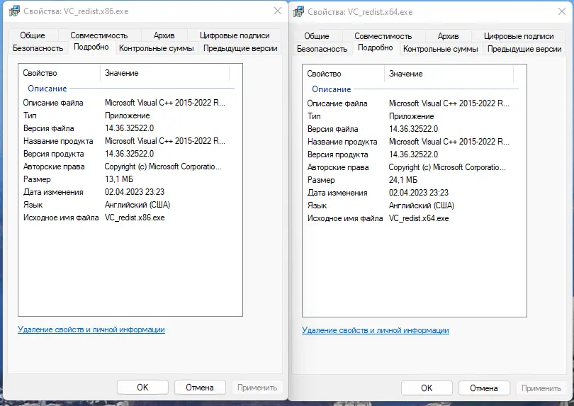 Каждая версия Visual C++ Redistributable соответствует определённому выпуску Visual Studio и не всегда совместима с приложениями, созданными в других версиях.