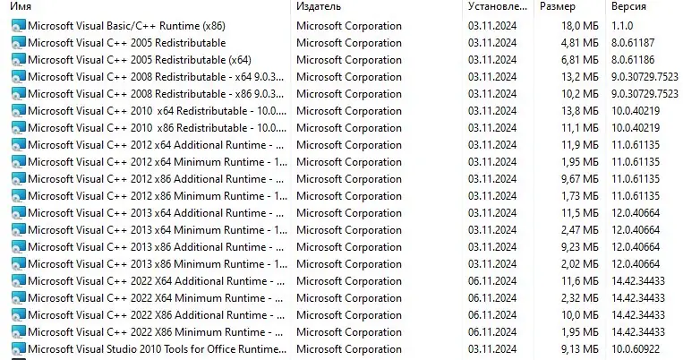 Microsoft Visual C++ Runtimes — это набор распространяемых компонентов, необходимых для корректной работы приложений, разработанных в среде Visual Studio. Они включают в себя библиотеки среды выполнения, такие как CRT, стандартная библиотека C++, MFC, C++ AMP и OpenMP. Без установки этих компонентов многие программы не запускаются или завершаются с ошибками.