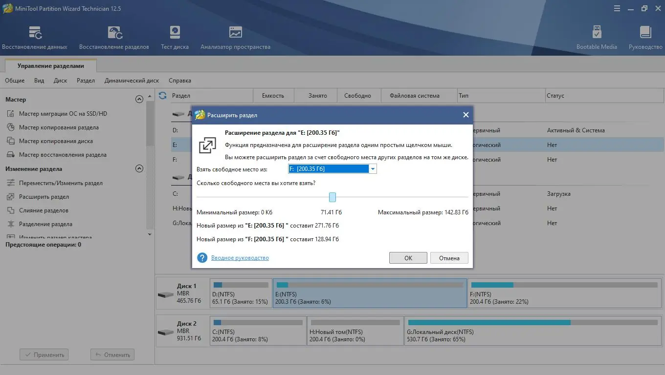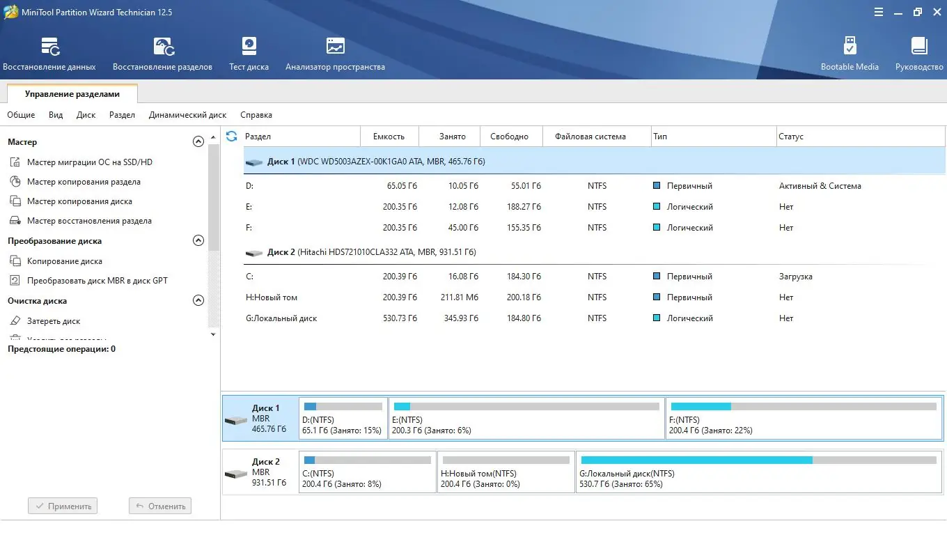 Работа с MiniTool Partition Wizard