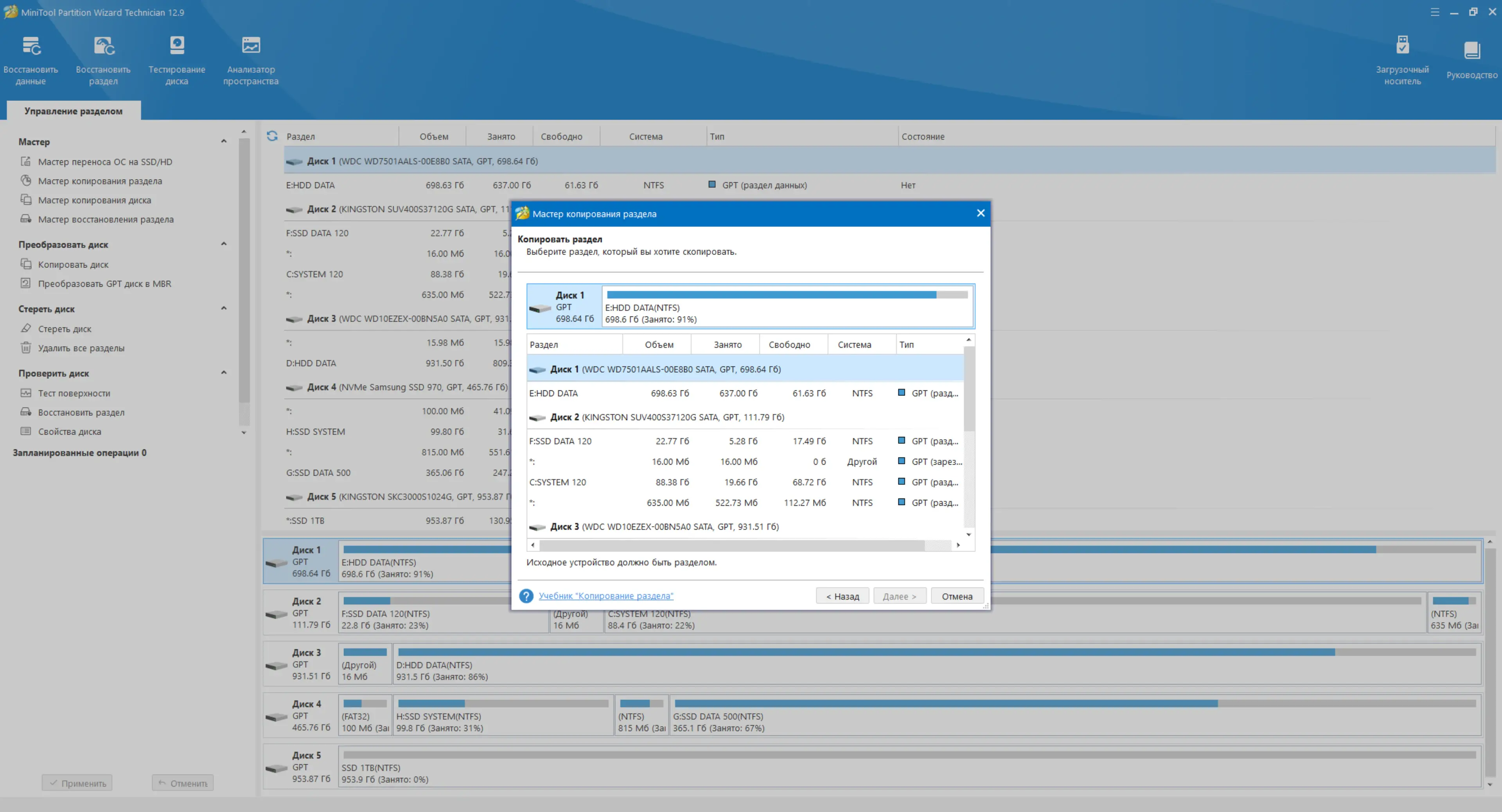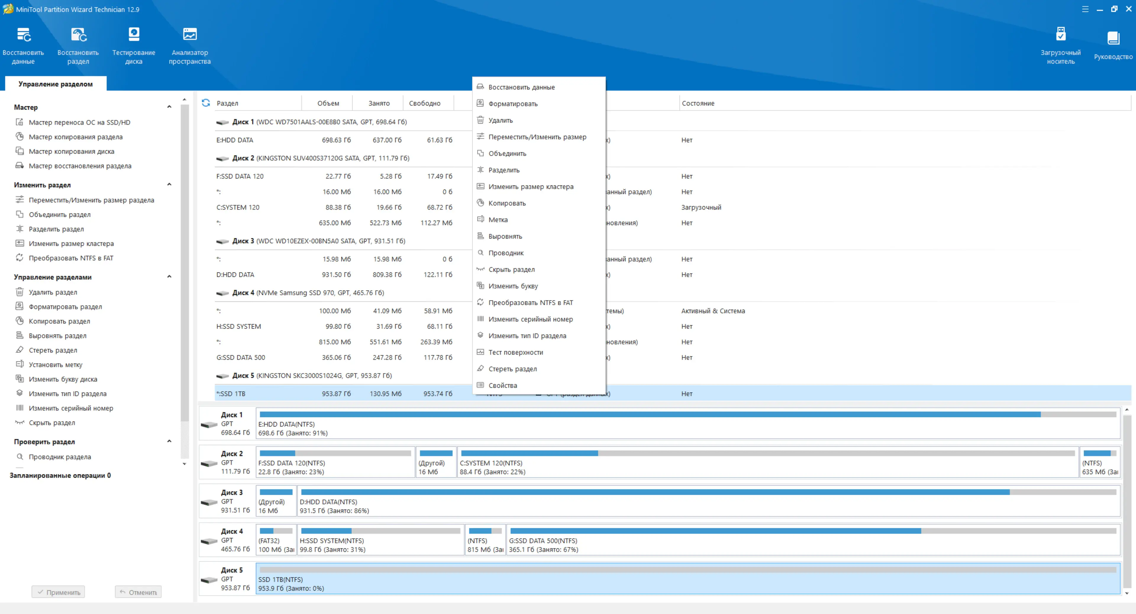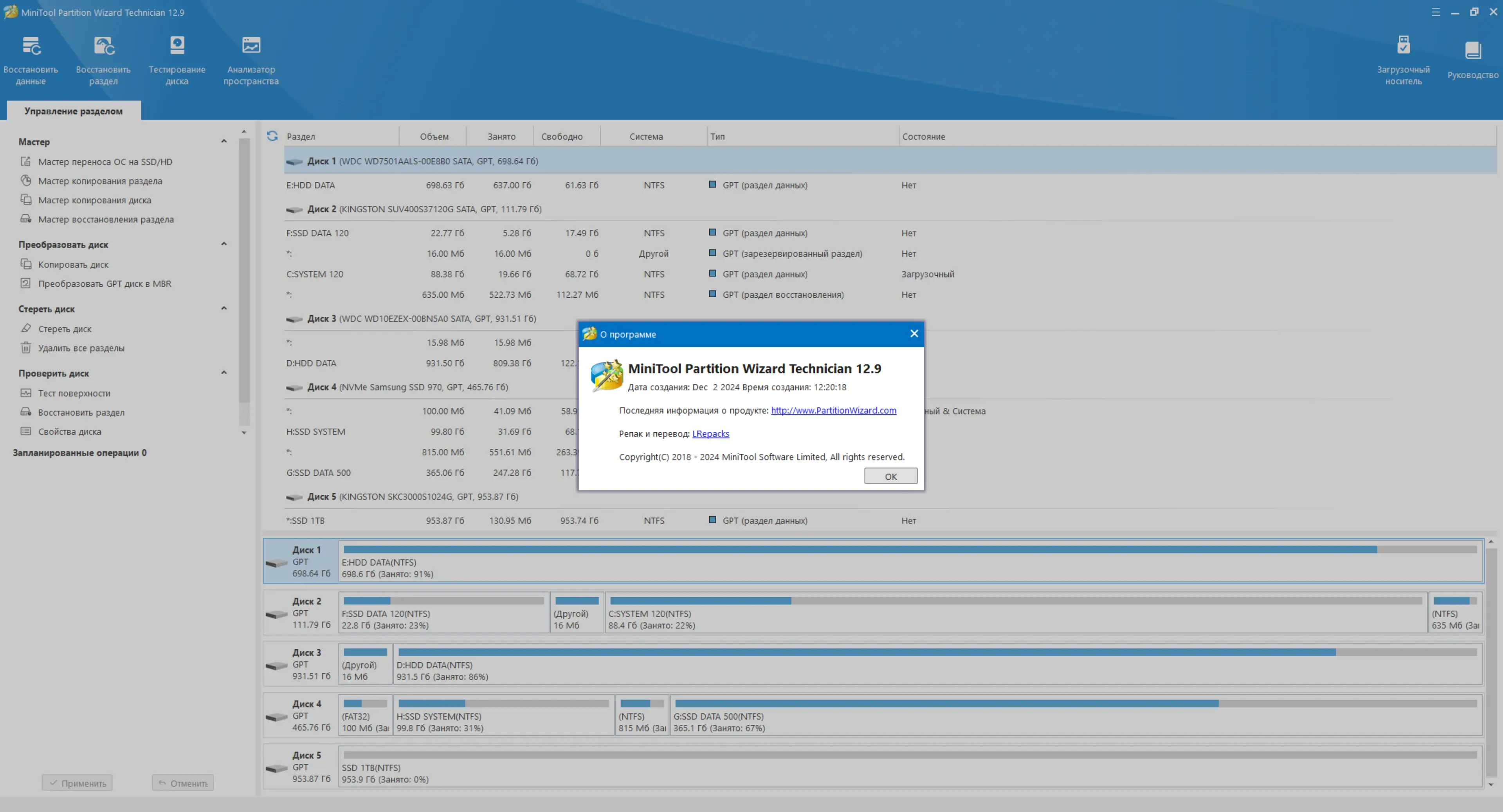 Работа с MiniTool Partition Wizard