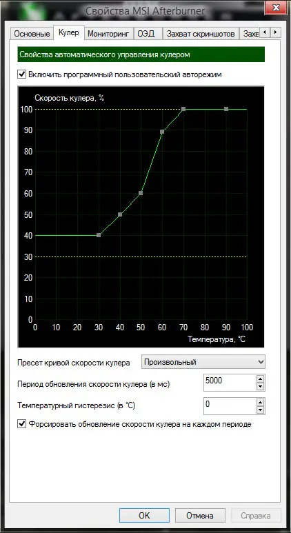 - Управление частотами ядра, памяти и шейдеров с возможностью раздельной регулировки